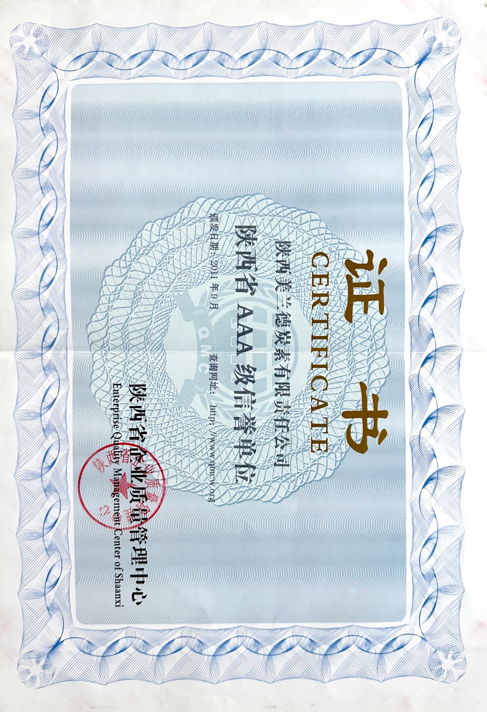 榮獲陜西省質(zhì)量管理中心授予陜西省AAA級信譽單位;